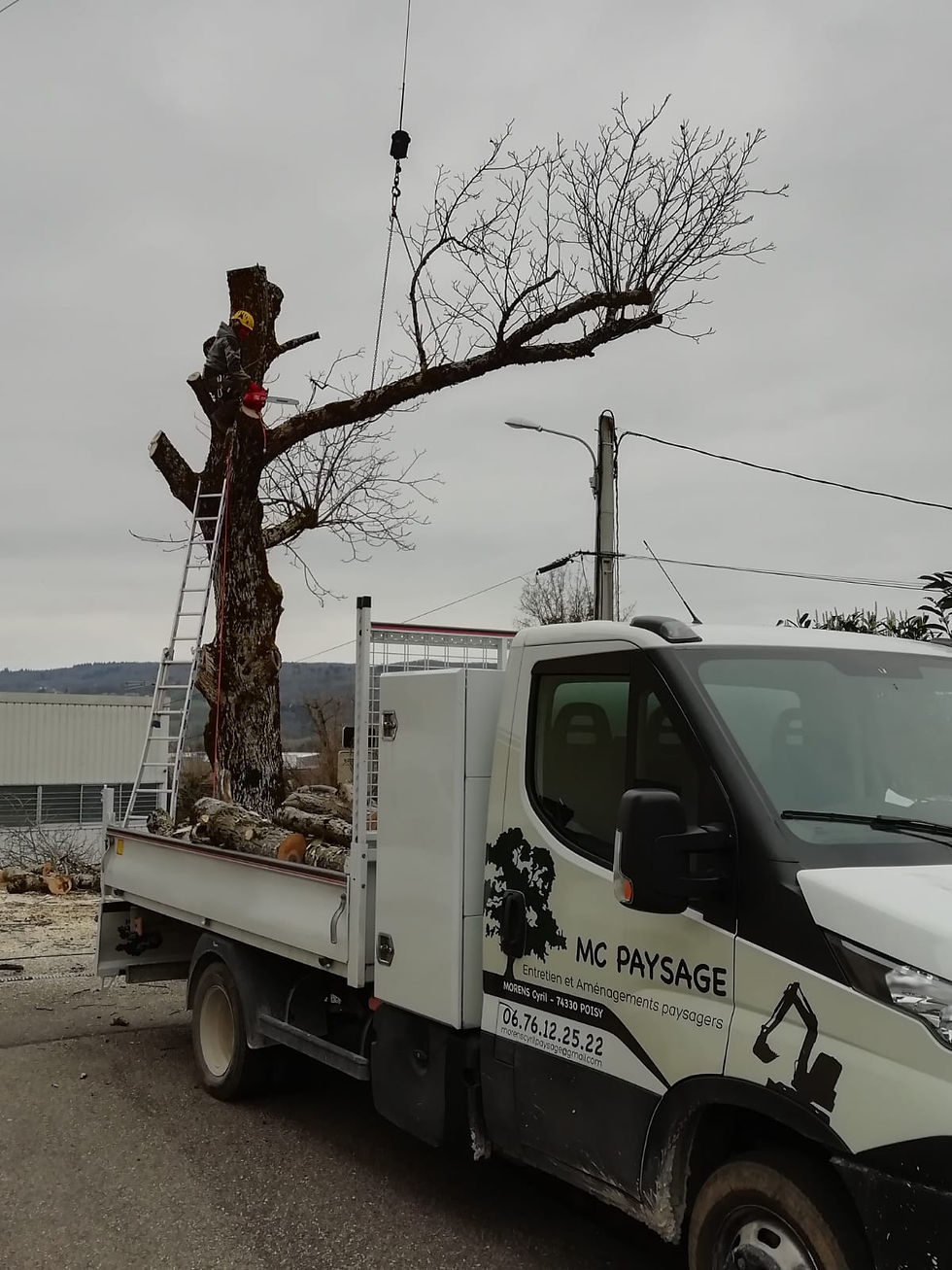 Démontage au camion grue d'un noyer